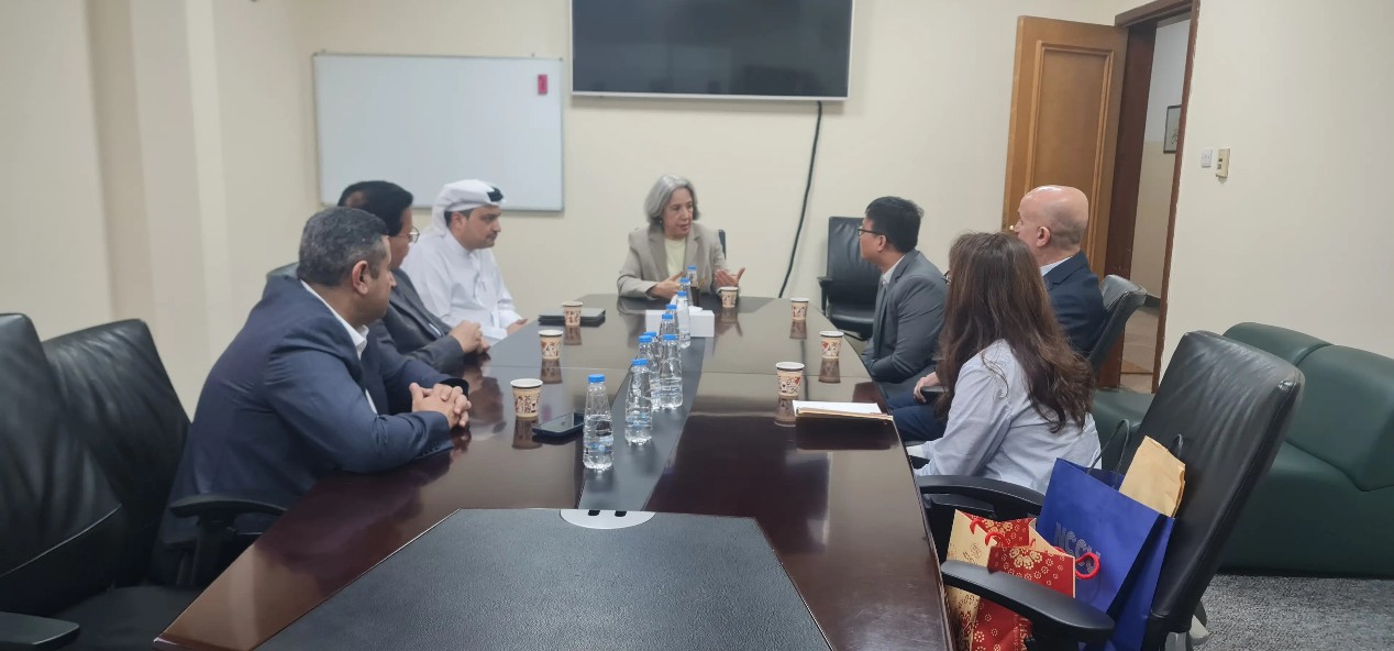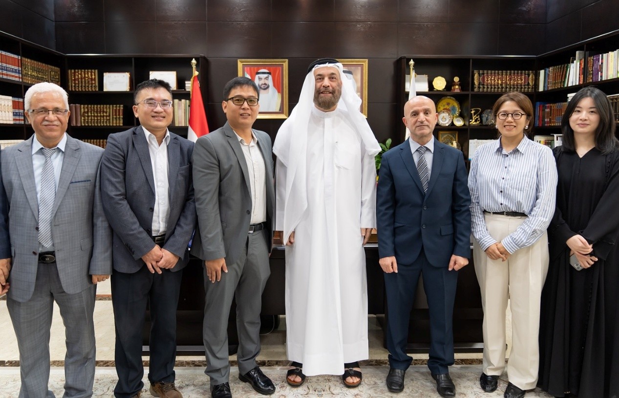 在隔日沙迦大學(University of Sharjah)的訪問中,訪團由藝術、人文與社會科學學院院長Zahia Smail Salhi教授與副院長Saleh Muhammad Zeki Mahmood Al Lehaibi教授接待,並邀集阿拉伯語文學系與歷史系教師共同參與座談。Zahia院長於會中表示,希望兩院能簽署合作協議,透過共同研究與師生交流,深化阿拉伯研究領域的合作;她亦提及該校對華語教學與學習的高度興趣。