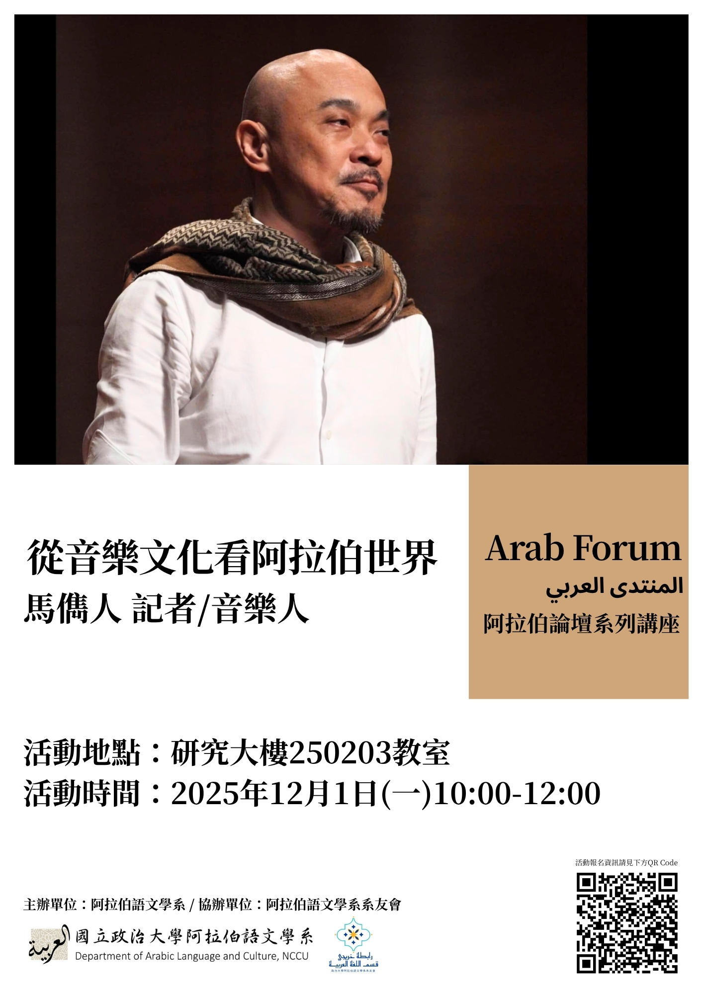 本系於114學年度第1學期開始舉辦阿拉伯論壇 Arab Forum,每學期將邀請與阿拉伯世界相關之產、官、學界代表人物或優秀先進蒞系演講交流。